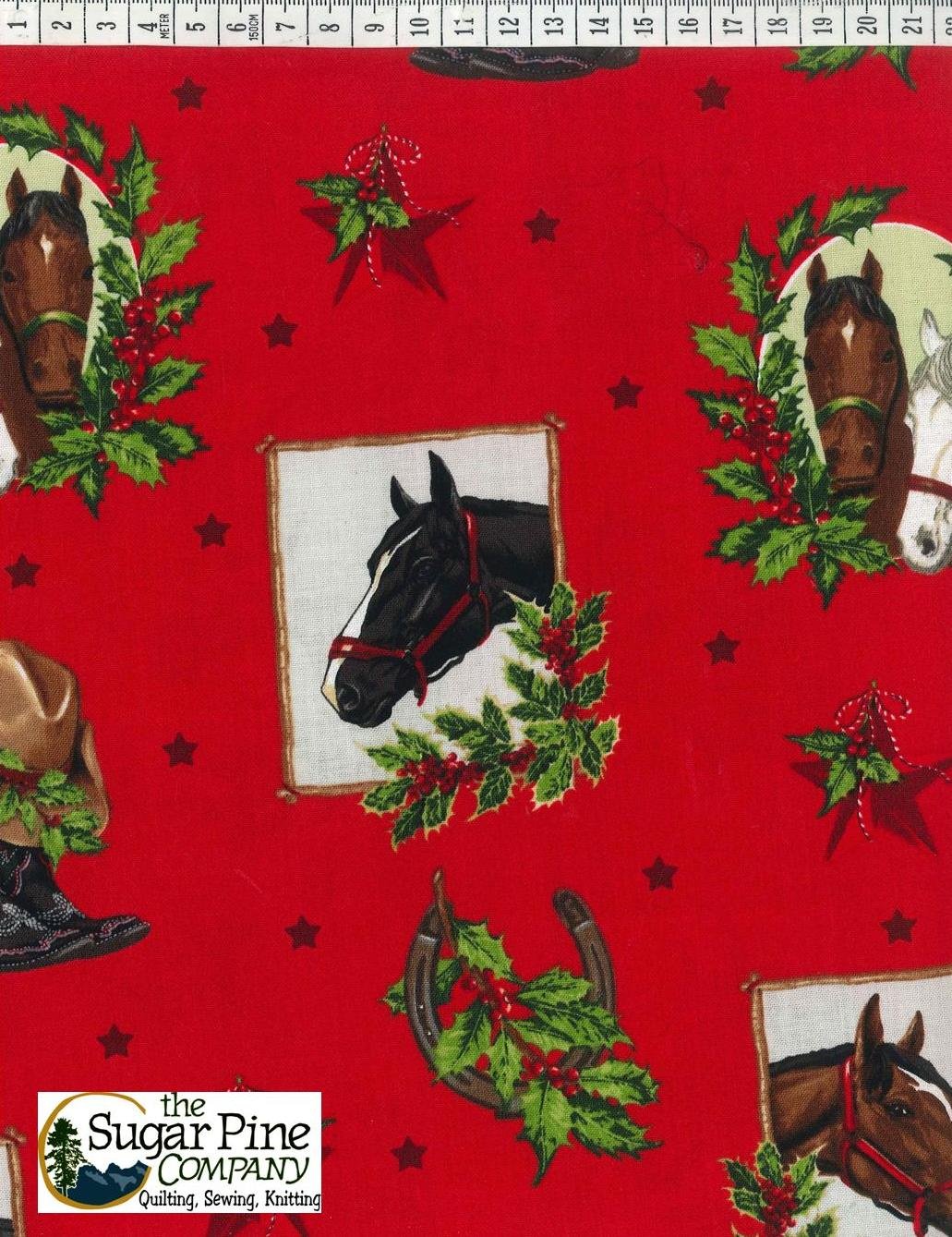 A Winter Sale Fabric - Cowtown Christmas Horses, Red