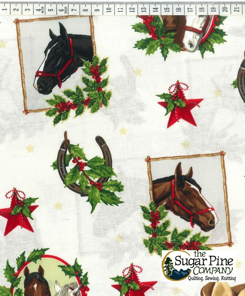 A Winter Sale Fabric - Cowtown Christmas Horses, White
