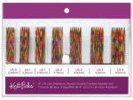 These vibrant rainbow coloured double point needles are made of a strong, polished, smooth laminated birch wood. Yarn slides freely along the needle without catching, but has enough grip to easily manage slippery yarns. This 10cm (4″) set includes 6 needles of each of the following sizes; 2.0mm/US 0, 2.25mm/US 1, 2.5mm/US 1, 2.75mm/US 2, 3.0mm/US 2, 3.25mm/US 3, 3.5mm/US 4.
